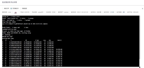 (5)双击作业可以查看作业运行过程中的输出文件、日志输出、性能监控 信息。
