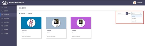 (2)进入“应用列表”页面后,可在页面右上角选择集群资源;