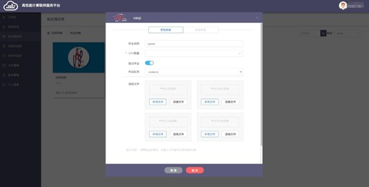 (3)点击批处理应用图标,在弹出的参数选项框中正确填写应用参数(添 加文件时可选择本地/远端文件),点击“提交”按钮;